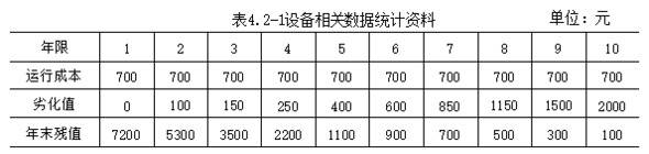 某设备原始价值为10000元,设备自然寿命为10年,有关资料统计见下表,则该设备的经济寿命为( )年。