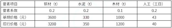 某工程施工合同规定用调值公式法对建安工程价款进行结算,某分部工程预算进度款为300万元,可调整要素和数据如下表所示,则调值后该分