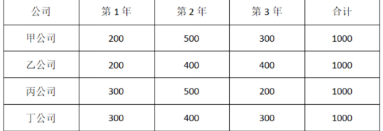 甲、乙、丙和丁四个公司投资相同项目,收益方案如下表(单位:元)。若社会平均收益率为10%,根据资 金时间价值原理,其投资收益最大的是( )。