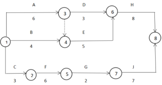 关键线路:A→E→H调整后的总工期:6+5+8=19个月