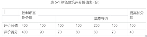 【正确答案】:(1)安全耐久、健康舒适、生活便利、环境宜居。(2)(400+90+70+80+80+70+40)/10=83分不满足绿色三星标准。