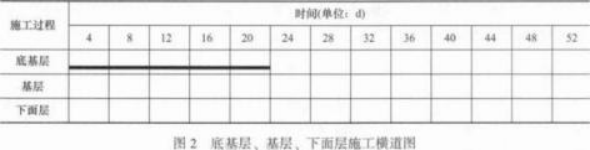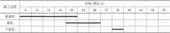 K20+000~K25+000段路面施工工期:44d。完善的基层与下面层的横道图如下: