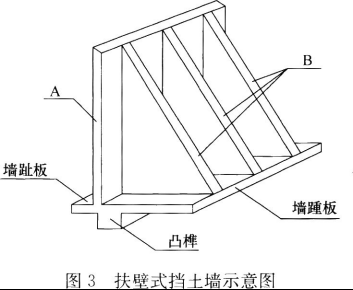 堤邻近营业线一侧支挡设计采用扶壁式挡土墙,挡土墙结构如图3所示;部分路基边坡设计采用浆砌片石“人