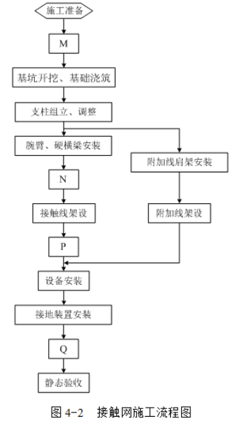 事件四:项目经理部拟定的接触网施工流程如图4-2所示。