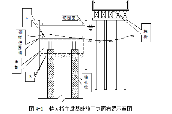 与钻孔平台,采取冲击钻成孔,承台采用钢板桩围堰施工。特大桥主墩基础施工立面布置如图4-1所示。
