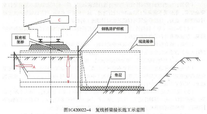 【正确答案】:1,A为锚桩和拉筋,B为高低纵横梁,C为铁路限界。 2,M为内模板,N为绑钢筋,P为外模板。 3,营业线安全防护方案、大型机械施工专项方案、防洪防汛专项方案、应急抢险专项方案、人身安全专项 方案、满堂支架搭设与拆除专项方案、钢轨防冻防胀的专项方案。 4,工务段:施工影响路基和轨道稳定;电务段:施工可能挖断通信、信号电缆;供电段:施工可能要求接 触网断电;车务段、邻近车站:临时封锁线路。