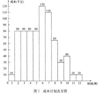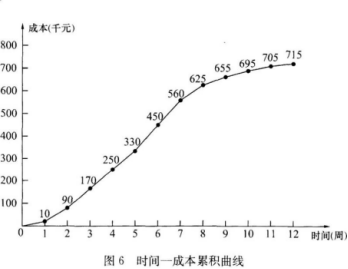 本工程按周编制的成本计划,如图5所示。本工程的时间一成本累积曲线,如图6所示。