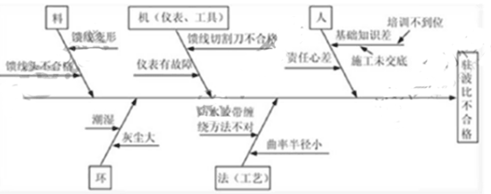 用因果分析图法分析电压驻波比不合格的可能原因。