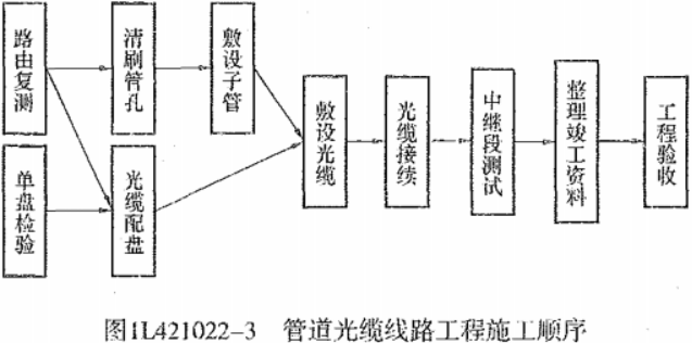 B工作:清刷管孔E工作:光缆配盘F工作:敷设光缆