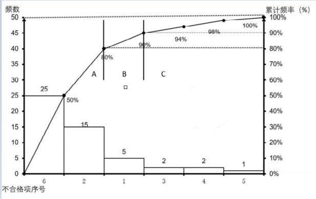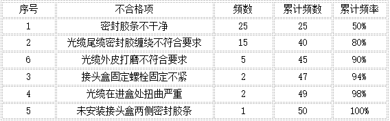 绘制排列图并分析接头盒密封不严的主要原因。(排列图中不合格项用序号代替)