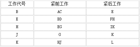 写出B、E、H、J、K的紧前工作和紧后工作。