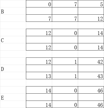 B和C时间间隔7H和I之间时间间隔1
