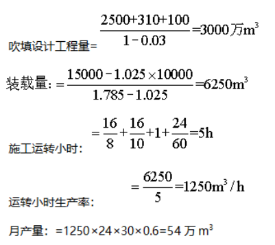 计算吹填设计工程量和该挖泥船施工运转小时生产率及月产量(每月按30d计算,计算结果四舍五入保留整数)。