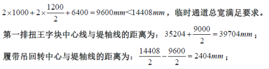 第一排扭王字块中心线与履带吊回转中心的距离为:39704-2404=37300mm;查表1-2得幅度38m对应的起重量为19.5t,幅度36m对应的起重量为21.1t;内插得幅度37.3m对应的起重量近似为20.1t;20.1t小于21t,所以不能安装外坡第一排扭王字块。选择船舶防台锚地应考虑的因素有:1)满足施工现场船舶、设施的水深要求。2)在施工作业区或靠近施工作业区的水域。3)周围无障碍物的环抱式港湾、水道。4)有消除或减弱浪涌的天然屏障或人工屏障的水域。5)有足够回旋距离的水域。6)泥或泥沙混合的底质。7)流速平缓。8)便于通信联系和应急抢险救助。