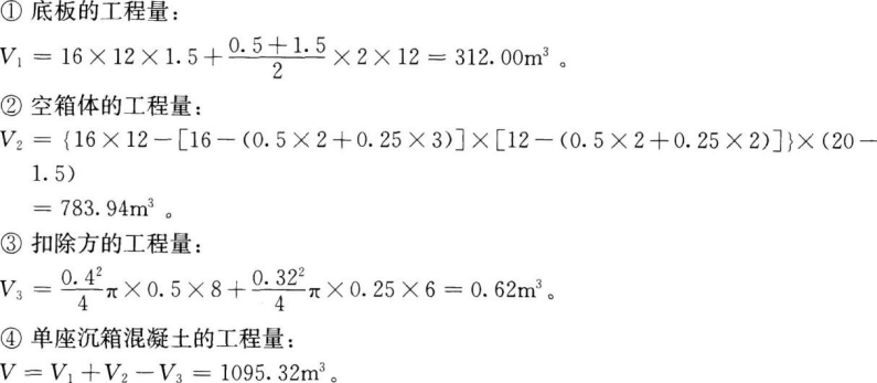 计算单座沉箱混凝土的工程量。(计算结果保留2位小数,下同)