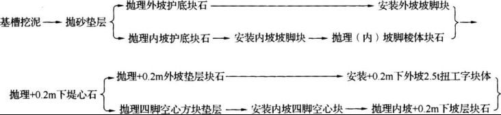 计算第Ⅰ级加载部分抛理外坡块石垫层每延米工程量,并简述其施工方法。(计算结果保留2位小数)