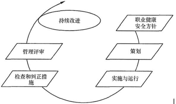 标准的结构系统采用PDCA循环管理模式,即标准由“职业健康安全方针—策划—实施与运行—检查和纠正措施—管理评审”五大要素构成,采用了PDCA动态循环、不断上升的螺旋式运行模式,体现了持续改进的动态管理思想。职业健康安全管理体系的运行模式如图4所示。