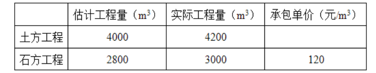 [单选题]某土石方工程实行混合计价,其中土方工程实行总价包干,包干价14万元;石方工程实行单价合同;相关的工程量和价格资料如下表,则该工程结算价款为( )万元。