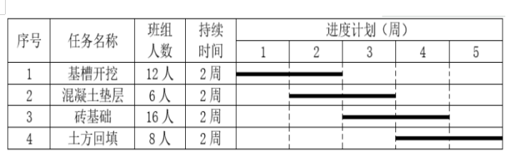 [单选题]某项目基础施工的横道图如下图,第三周的施工人数是( )人。