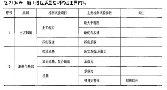 施工过程质量检测试验的内容应依据国家现行相关标准、设计文件、合同要求和施工质量控制的需要确定,主要内容见题21解表。由表可知,为了控制建筑工程地基施工质量需要检测试验的主要参数是地基承载力。