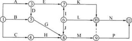 【题目解析】:网络图应只有一个起点节点和一个终点节点(任务中部分工作需要分期完成的网络计划除外)。 除网络图的起点节点和终点节点外,不允许出现没有外向箭线的节点和没有内向箭线的节点。该网络图中存在两个起点,分别是①和⑥。