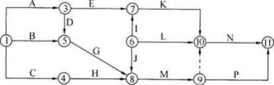 【题目解析】:网络图应只有一个起点节点和一个终点节点(任务中部分工作需要分期完成的网络计划除外 )。除网络图的起点节点和终点节点外,不允许出现没有外向箭线的节点和没有内向箭线的节点。该网络图中存在两个起点,分别是①和⑥。