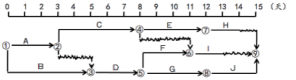 【题目解析】:由图中可以直接看出工作C的最早开始时间为第3天;总时差通过计算后续线路上波形线之和的最小值为1天。
