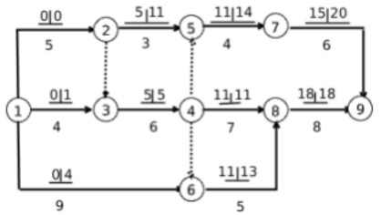 【题目解析】:本题考查的是双代号网络计划时间参数的计算。关键线路:①→②→③→④→⑧→⑨,①-③不 是关键工作。工作⑤-⑦的总时差=14-11=3,工作⑤-⑦的自由时差=15-11-4=0,两者不相等。