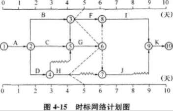 检查某工程的实际进度后,绘制的进度前锋线如图4-15所示,在原计划工期不变的情况下,H工作尚有总时差()天。