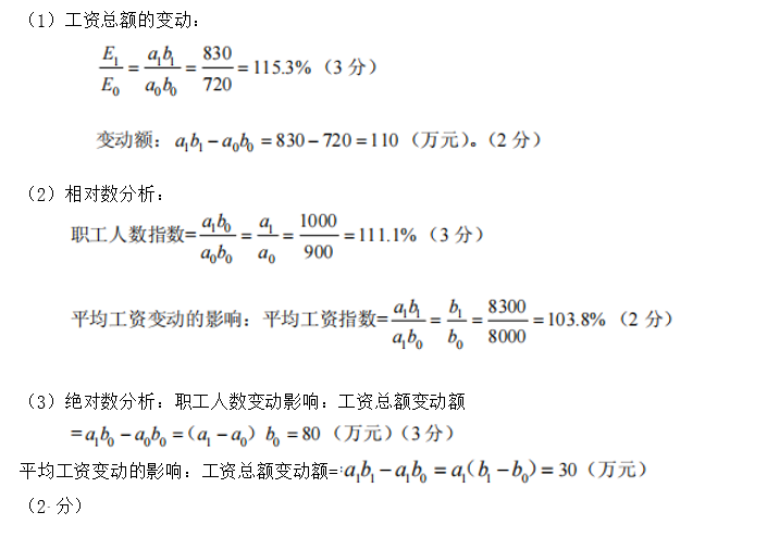 (3)从绝对数两方面对该企业工资总额变动进行因素分析。(5分)