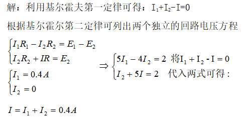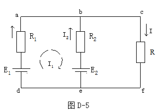 有一直流电路如图D-5所示,图中E1=10V,E2=8V,ab支路电阻R1=5Ω,R2=4Ω,R=20Ω,试用支路电流法求电流I1,I2和I。