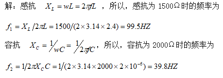 一个2.4H电感器,在多大频率时具有1500Ω的感抗? 一个2μF的电容