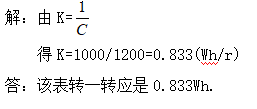 某一单相电能表铭牌上标明C=1200r/kWh,求该表转一转应是多少瓦时?