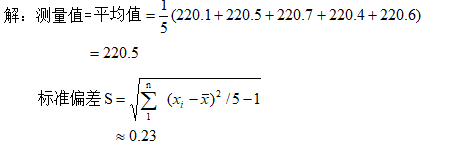在同一条件下,测得某段线路电压值分别为220.1V,220.5V,220.7V,220.4V,220.6V,求测量值和标准今偏差
