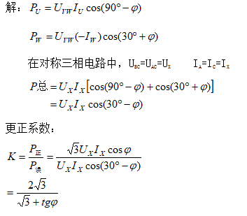 达式和总功率表达式,以及计算出更正系数K,(三相负载平衡)