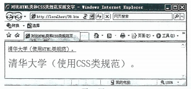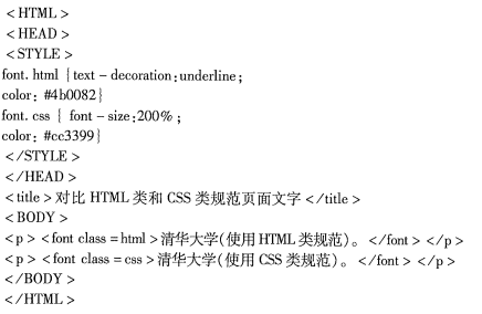 (4)使用这两个类分别规范文字“清华大学(使用HTML类规范)。”和“清华大学(使用CSS类规范)。”;