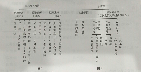 2013年唐济突然去世,家人协商由刚从大学毕业的唐文继任总经理,掌握公司大权。唐文首先想到的是改革公司的组织结构,经过反复思考,设计出另一张组织结构图,见图2。他自认为这一改革有许多好处,对公司发展有利。但又感到会遇到一些问题,例如将家庭成员从重要职位上调开,可能使他们不满(尽管他了解公司职工对其父原来的安排都有些怨言)。于是他准备逐步实施这项改革,争取用一年左右的时间去完成它。