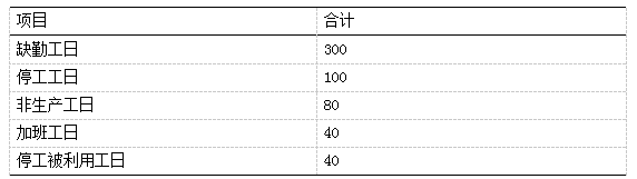 制度内实际劳动工日数=出勤工日-非生产工日-停工工日+停工被利用工日=20400-80-100+40=20260工日